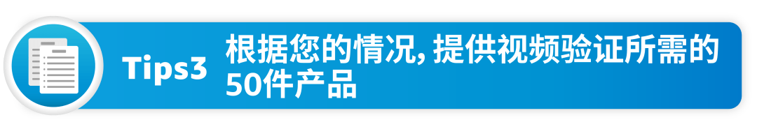 亚马逊将会考虑到卖家的特殊情况。如果您的产品为易腐产品或按需订购产品,在视频验证前产品库存不足50件,请尽可能携带您的可用库存,并向亚马逊展示您的生产设备、生产线或原材料等。
