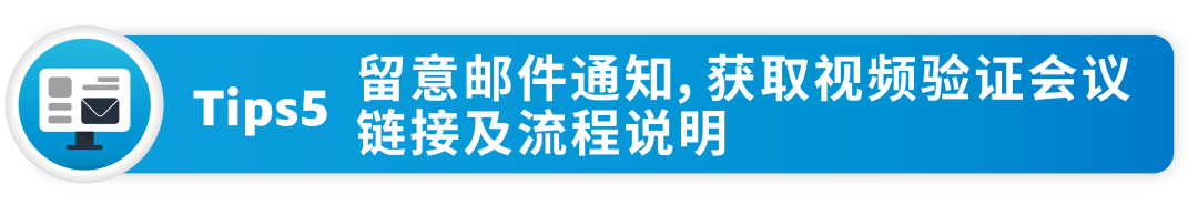 因此,建议您在收到邮件时,及时回复并预约您的视频验证会议时间。以下为您带来视频验证的详细准备建议,快快码住这些Tips,告别视频验证手忙脚乱!